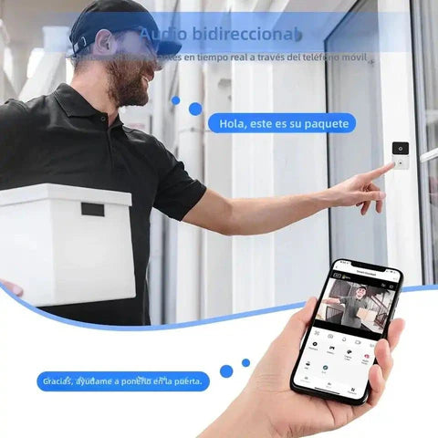 Con el Mini Video Portero con Timbre, puedes mantener un ojo en tu hogar desde cualquier lugar. Su diseño compacto y potente te permite ver quién está en tu puerta y comunicarte con ellos, todo desde tu teléfono inteligente.